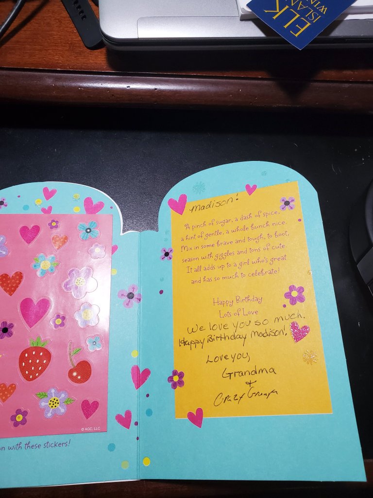 Just wanted to wish my beautiful granddaughter happy birthday and show you the card we sent.